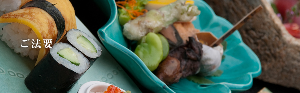 ご法要会席 お料理 すべてのコースの最後にお寿司が出ます。季節により料理内容は変更となります。
