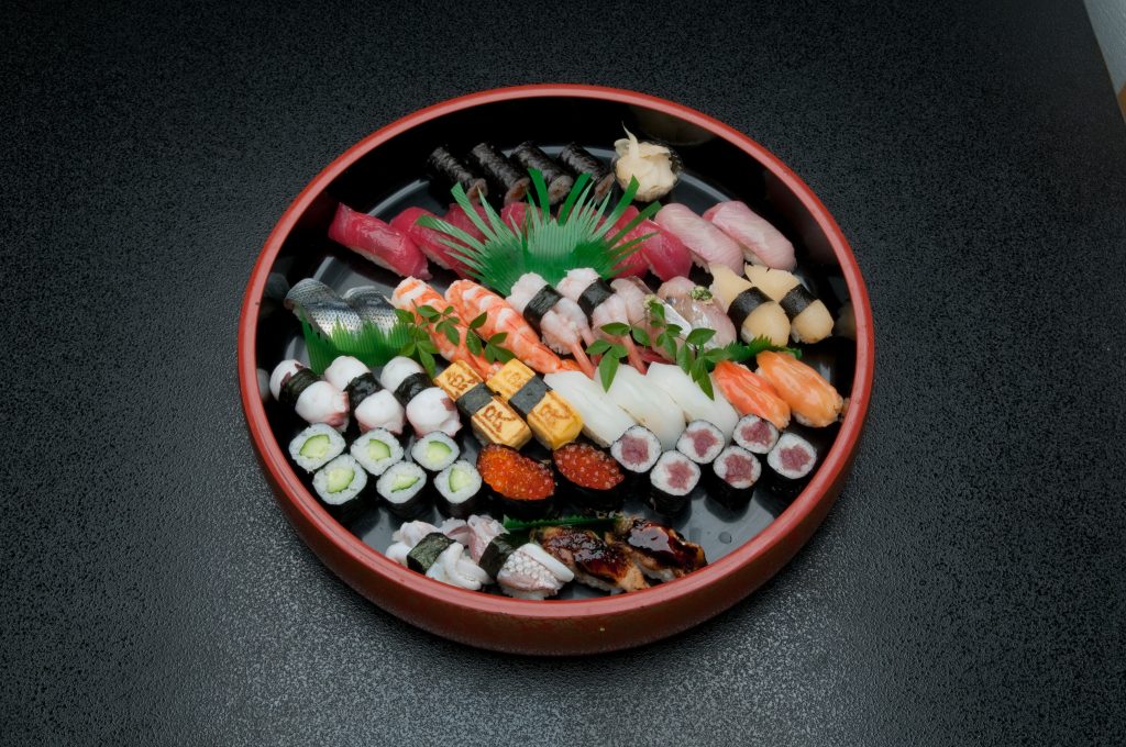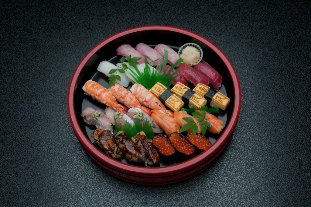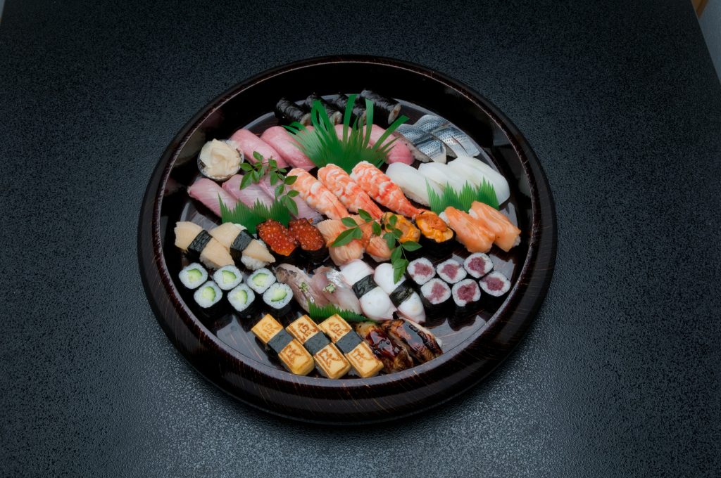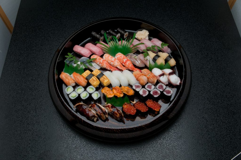 お寿司は例年通り、種類が色々入った握りや巻物を入れた大皿が4ランク、握りずしだけを9種類入れた大皿が6種類ご用意しました。